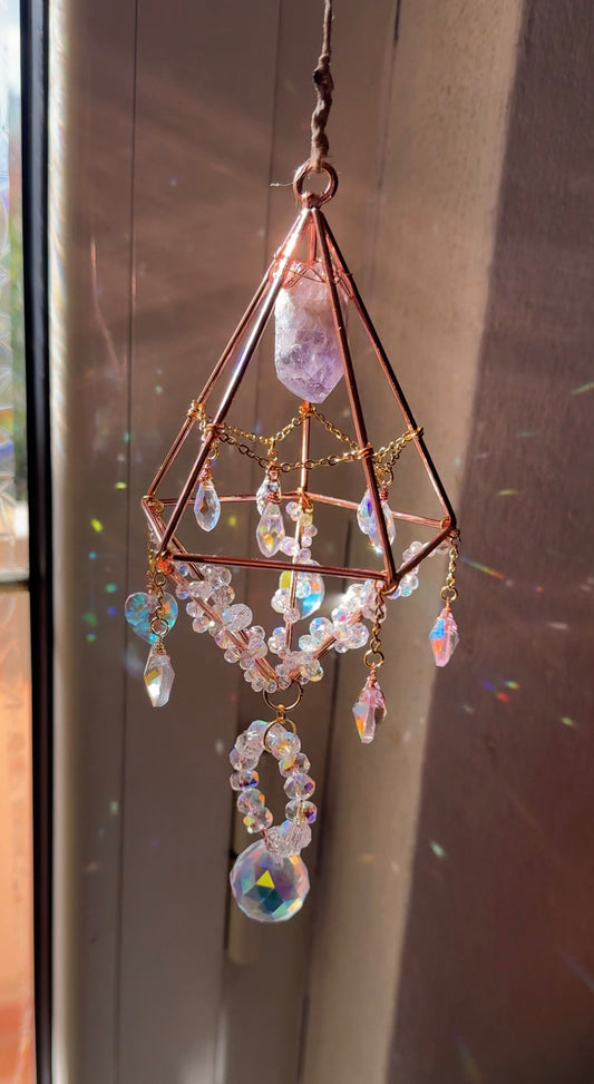 Ogni acchiappasole è frutto di un attenta selezione di materiali, dove ogni cristallo è scelto non solo per la sua bellezza estetica, ma anche per le sue proprietà energetiche. L'idea di catturare la luce del sole e trasformarla in un magico gioco di colori passa attraverso le mie mani e il mio cuore mentre creo ciascun pezzo. Sono convinta che questi oggetti non siano delle semplici decorazioni, ma anche strumenti per portare armonia e serenità nelle vostre case.